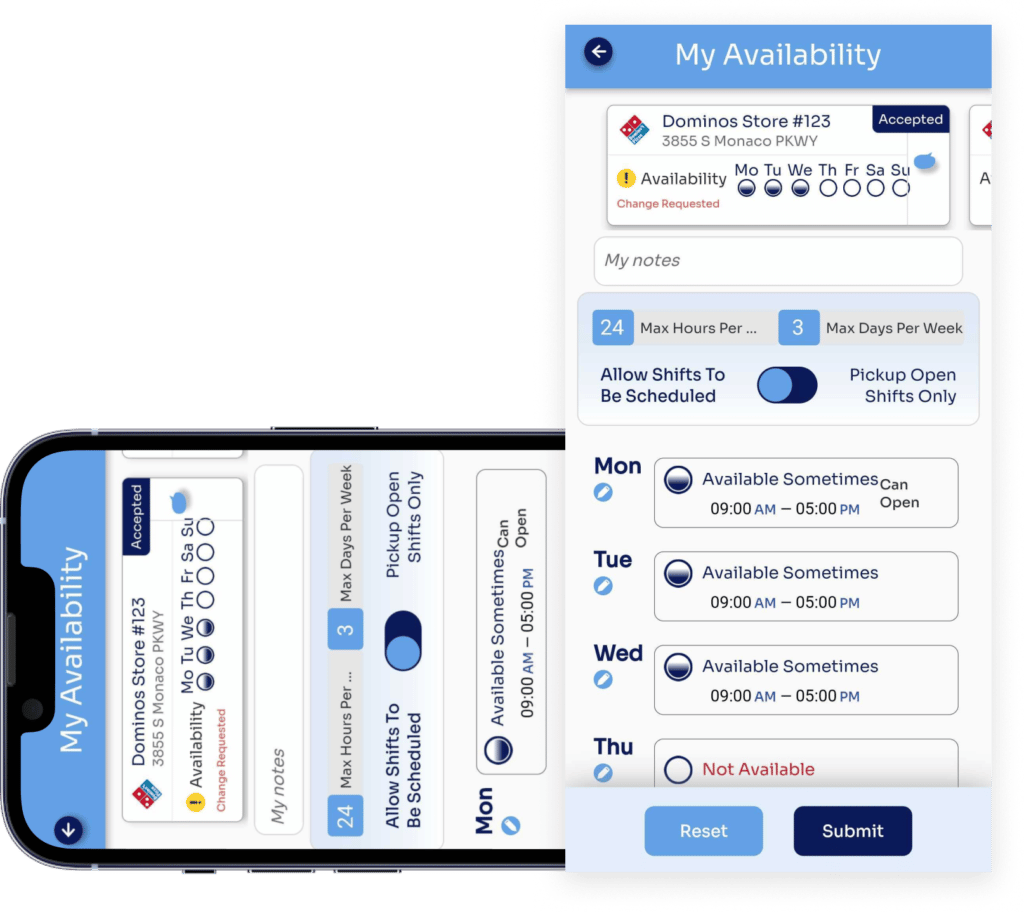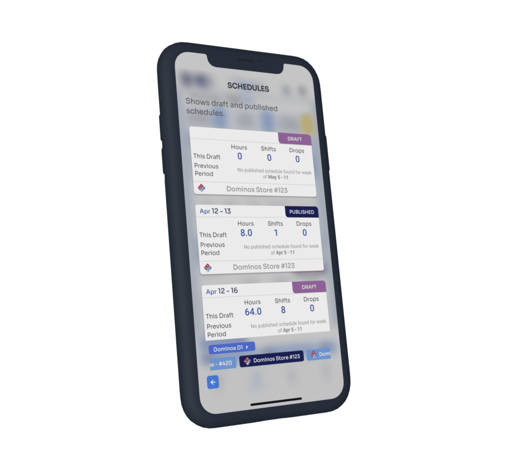 Bird’s eye view of the weekly and monthly schedule for easy shift management.