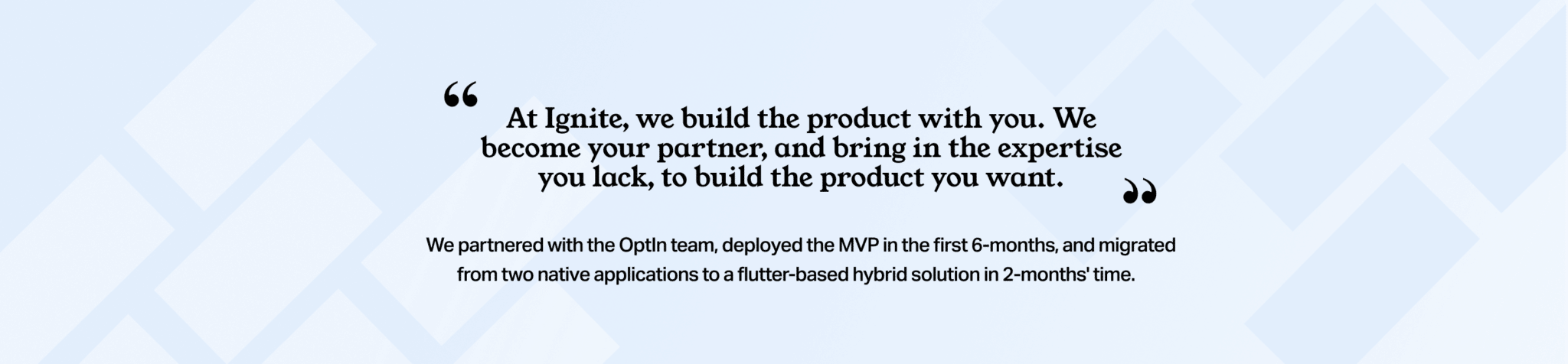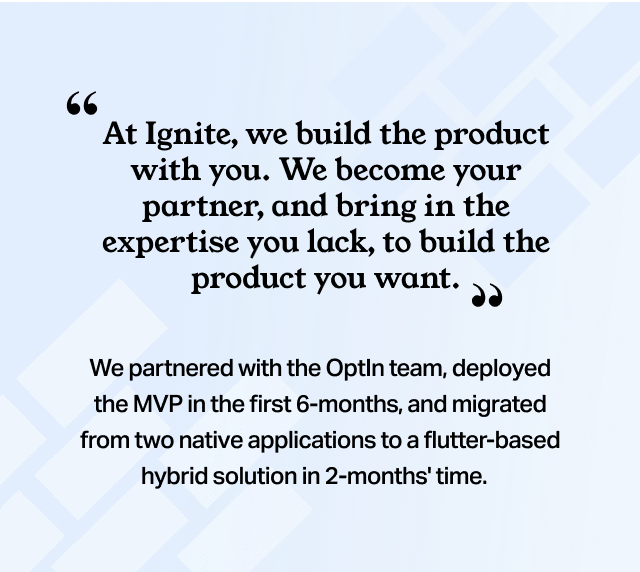 Despite collaborating from two different time zones, building OptIn has been a rewarding experience both in terms of innovation and execution. OptIn’s in-house team has been very welcoming in their approach, and Ignite’s suggestions and feedback have been given deserving consideration at every step of the process.